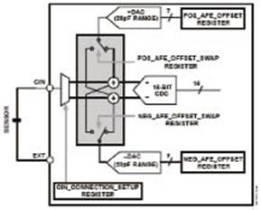 圖3 模擬前端,其中DAC幫助消除寄生電容的影響