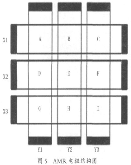 圖5 給出了利用四線式電阻觸摸屏實現多點觸摸技術的方法:第一個時刻,在X1 電極上加上電壓,由Y1、Y2、Y3 電極讀取A、B、C 觸摸單元所探測到的X 坐標;同理,在以后的各個時刻依次讀取剩余觸摸單元的X 坐標。獲得所有觸摸單元的X 坐標后,再依次給Y 電極加上電壓,以獲得各個觸摸單元的Y 坐標。