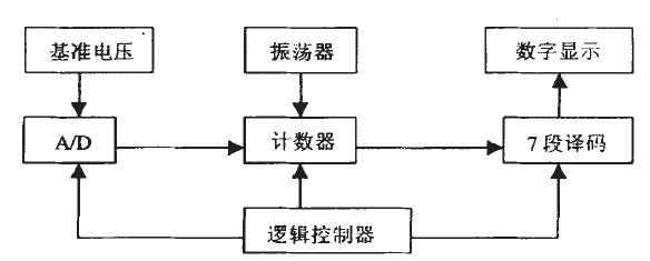 放大后的模擬電壓經過A/D轉換器實現模擬量到數字量的轉換。A/D轉換結果通過計數譯碼電路變換成7段譯碼, 最后驅動顯示出相應的數值, 傳感器驅動顯示電路方框圖如圖6所示。