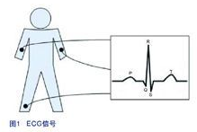 心電圖機(jī)(ECG)可實(shí)時記錄病人的心跳活動。心跳信號是通過三個連接到病人身體的電極測量出來。圖1所示為其中一個電極輸出的ECG信號,圖中包含有五個測量點(diǎn),分別是Q、P、R、S、和T,這些測量點(diǎn)可用來診斷病人患上心臟病的可能性。