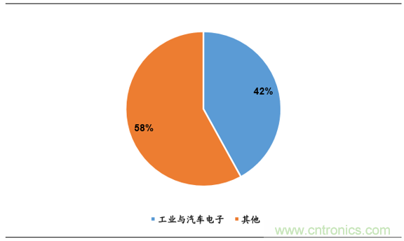 從應用領域來看,工業、汽車電子、通信電子、消費電子四部分是傳感器最大的市 場。國內工業和汽車電子產品領域的傳感器占比約 42%左右,而發展最快的是汽車電子和通信電子應用市場。
