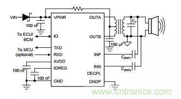 Ÿ時間指令接口(TCI)或者從模塊連接到局部電子控制單元或直接連接到車身控制模塊(BCM)(總線配置)的局域互連網絡(LIN)通信。