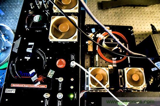 開發(fā)這款激光器的研究人員Mohammed Islam表示,“大多數(shù)化學品的指紋特征吸收峰在2~11微米之間,因此,這個波長范圍被稱為‘光譜指紋區(qū)’,我們的裝置能夠根據(jù)其化學特征吸收峰識別固體、液體和氣體目標物質(zhì)。”