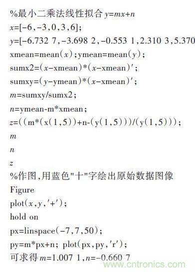由于按照最小二乘法的基本步驟進行擬合的計算量比較大,所以本文采用Matlab進行數據處理,這樣不但可以減少復雜的計算過程,而且還可以保證較高的計算精度。