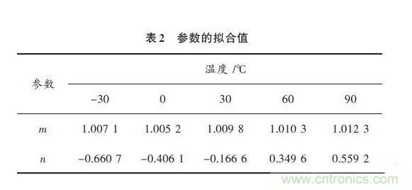 依次求出不同溫度下參數m 和n 的值,計算結果如表2所示。