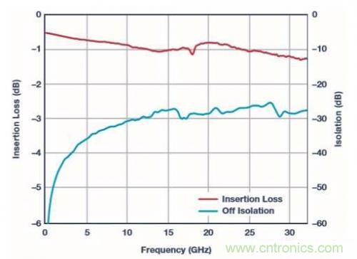 圖五 : SPDT MEMS開(kāi)關(guān)性能,采用QFN封裝