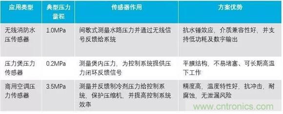 物聯網及家電領域陶瓷電容壓力傳感器典型應用如下表所示: