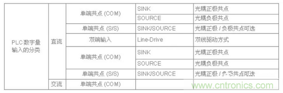 PLC的數字量輸入端子,按電源分直流與交流,按輸入接口分類由單端共點輸入與雙端輸入,單端共點接電源正極為SINK(sink Current 拉電流),單端共點接電源負極為SRCE(source Current 灌電流)。