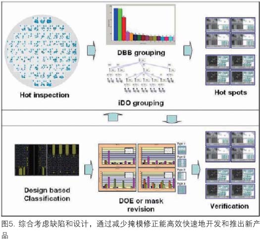 用與設(shè)計(jì)相關(guān)的檢測設(shè)置,現(xiàn)在可以產(chǎn)生更智能化的檢測菜單,注意力集中在最重要的芯片區(qū)域。這一技術(shù)已成功地在開發(fā)和生產(chǎn)工廠中進(jìn)行了試驗(yàn)。引入新方法后,缺陷識別更有效,因而能通過分析實(shí)驗(yàn)結(jié)果減少工藝開發(fā)時(shí)間(圖5)。由于能方便地監(jiān)控關(guān)鍵結(jié)構(gòu),就可以評估每一組實(shí)驗(yàn),以便選擇刻印圖形結(jié)果最好的工藝條件。